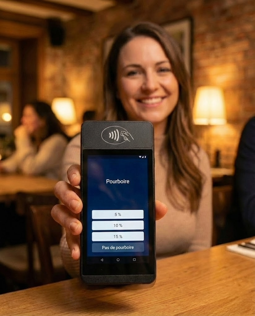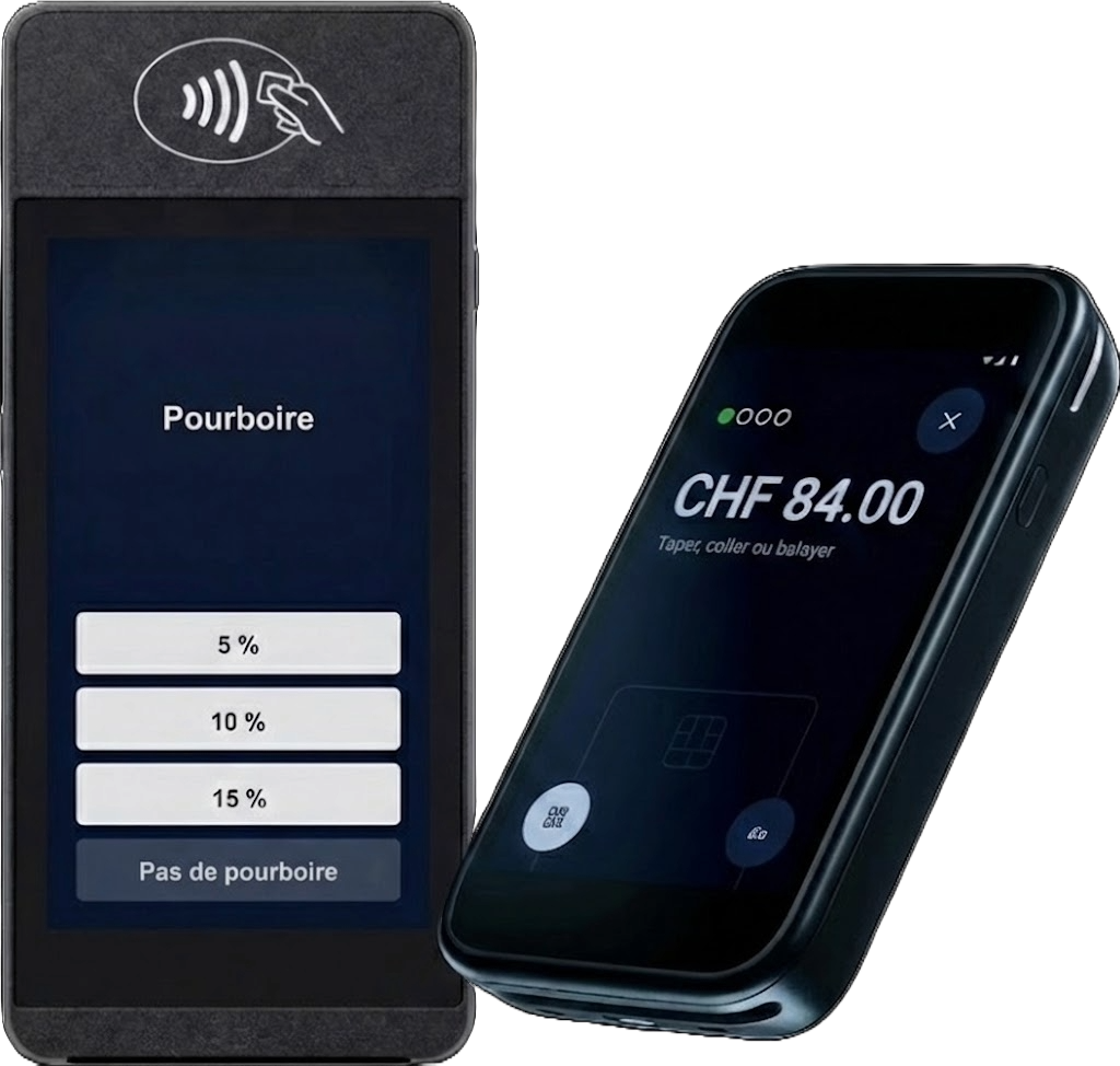 - Options de pourboire préconfigurées (en CHF ou en %) et montants libres
