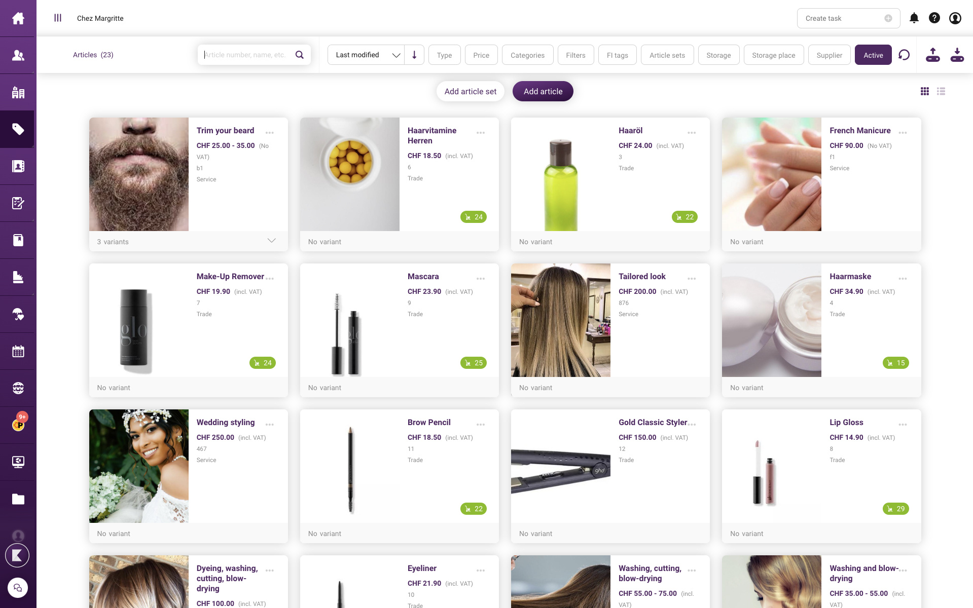 Le système de caisse KLARA a été spécialement conçu pour répondre aux besoins de salons comme le vôtre. Vous pouvez facilement créer des articles et des variantes ainsi que des catégories de prix pour vos clients.